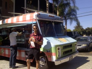 We took freeways 57, 91, 605, 105, 405, and 90 to get to “The Brig”.  We went to get food from the Dim Sum Truck, but new truck Ciao Bella was also there, and it was their second day in business. While walking back to our car, we saw KO Taco Truck across the street.