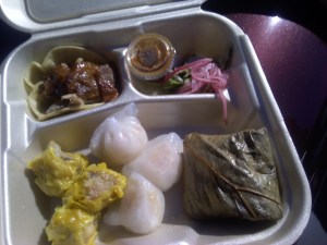 Siu Mai (pork), Ha Gow (shrimp), & Sticky Rice wrapped in lotus leaf