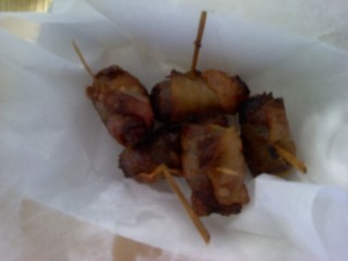| Barcelona on the go’s Restaurant Week menu Course 1: Bacon wrapped dates |