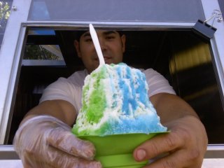 The REI in Santa Ana (off the 5/ 55 freeways & McFadden) is having a big sale, and also parked there was Piaggio and Tropical Shave Ice. It was also such a nice day that Anna and I had to stop by for lunch.