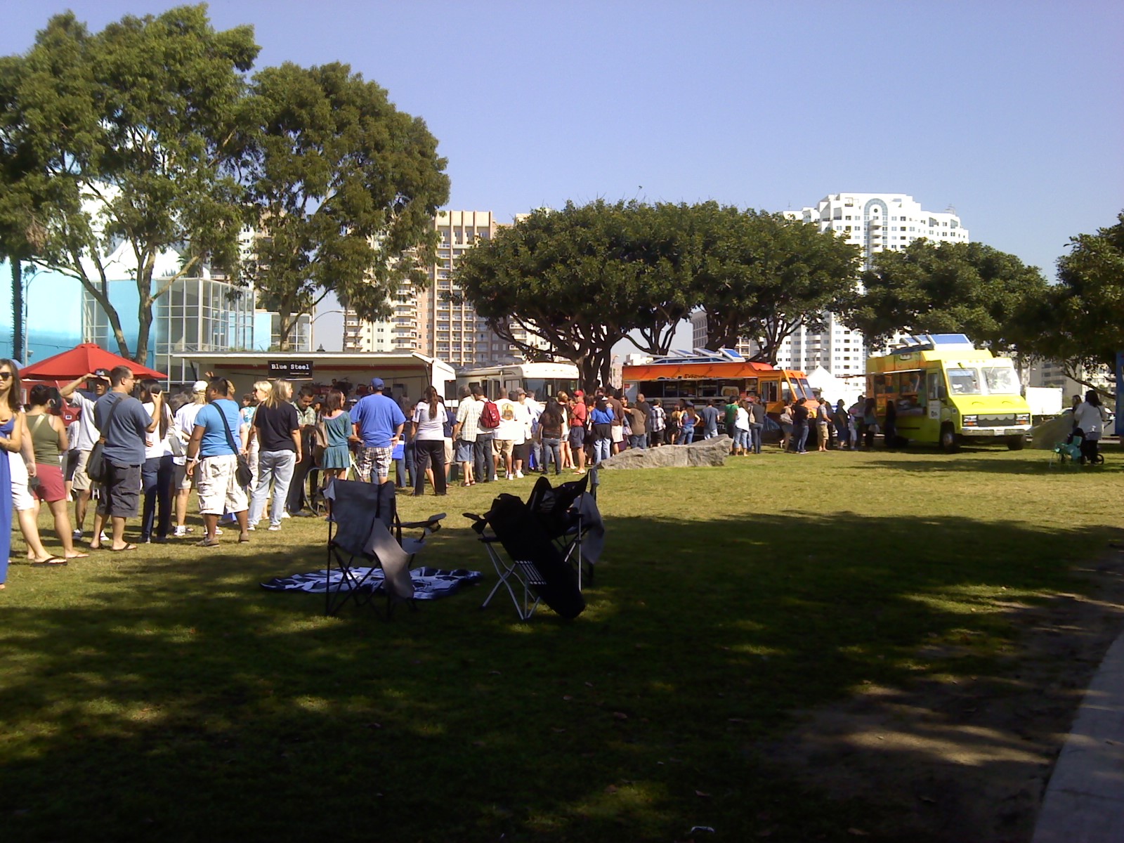 There was a big gourmet truck gathering at the Rainbow Lagoon Park in Long Beach. Over 20 trucks were there, with admission $6 for pre-sale, $8 cash at the door.  The proceeds were going to Long Beach City schools.