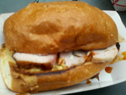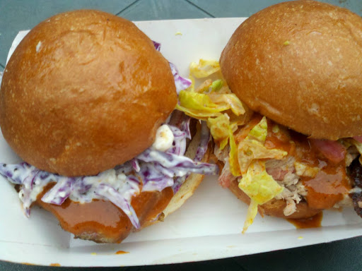 Here’s a better picture of the newly wrapped truck, tri-tip (left) and pulled pork sliders, sliced pork loin sandwich.