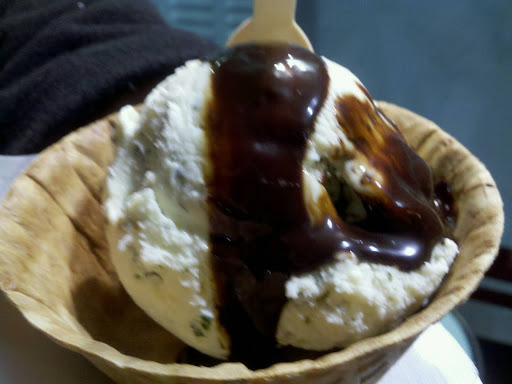 Most of the trucks were shut down or were running out of food. We stopped by Lake Street Creamery where Karen got a scoop of Holiday chocolate, and Martin got the California Zephyr. Unfortunately I’m lactose intolerant, so I went to Tropical Shave ice for my melona. Martin also picked up a bahn mi from Madeline Grill.