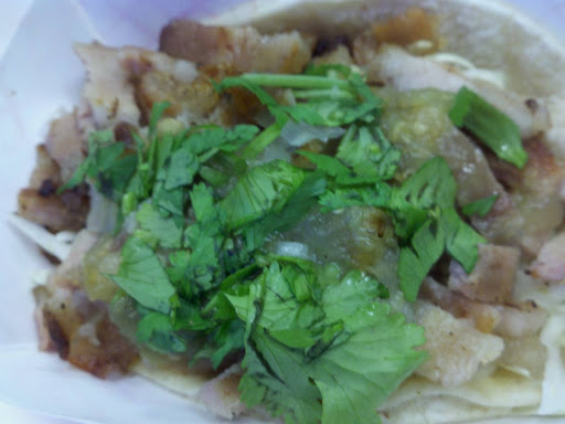 I picked up a crunchy roll & an order of tuna sushi from Rolling Sushi, and a Bolsa taco from Dos Chinos.
