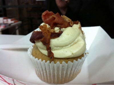 Karen ordered Udon from Rollingsushivan, and we split a Sweet potato & bacon cupcake from Oh For Sweet Sakes before getting dessert from Tropshaveice (not pictured).