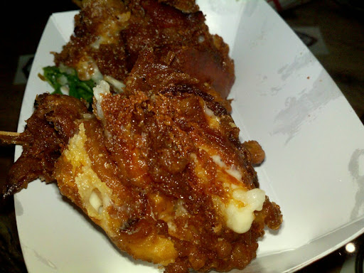 I also tried a modified version of the Bacon Tempura, which bacon wrapped around spinach, pepperjack, swiss, then dropped in tempura batter. I opted out of the siracha sauce, which is why it looks so…. brown and plain.