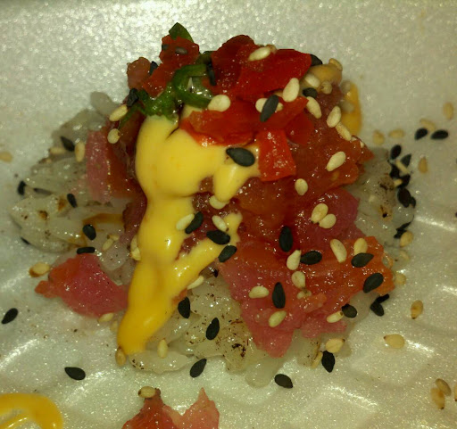 | Not sure what to call this… Its a spicy tuna from Rolling Sushi Van, But the rice was grilled on Dogzilla’s truck |
