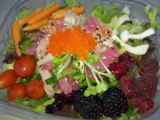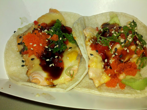 The special taco of the day was the Baked Salmon, which Linda ordered. Martin ordered the Sashimi Salad, and Karen & I ordered our usual Udon (not pictured) before going to Morsels Bakery Truck for our Banana Cream Dessert Shots.