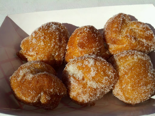 Tastybunz are soft buns filled with meat. We were actually full from the first three trucks, so we sampled a few items. Karen ordered the “Happy Ending” dessert sampler, which are pot stickers filled with white chocolate, peanut crisp, and chocolate banana.