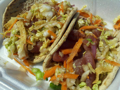 I ordered my favorite, the Island Fusion Wrap with Ahi Poke Tuna, and the Teri Chicken Bento box (which had rice, noodles, spam & chicken). Karen picked up the Spam Breakfast plate (2 scoops of rice, 3 slice of grilled spam & egg).