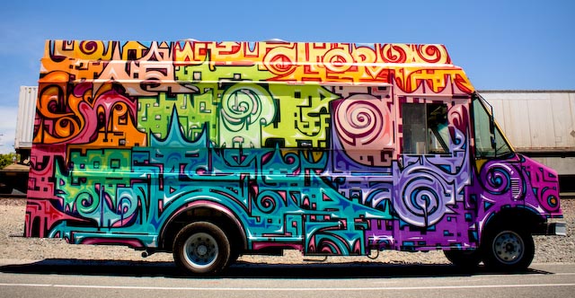 Designed to be reminiscent of East Side Gallery in Berlin, Germany, the exterior of the truck will be redesigned every few months to feature a new artist’s work.