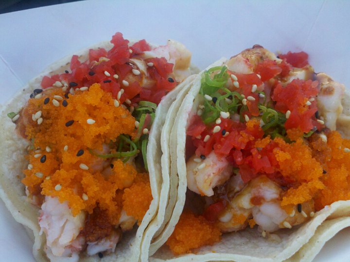 At Rolling Sushi, we picked up the Sashimi Salad, the Spicy Tuna Chips, and the Lobster Taco.