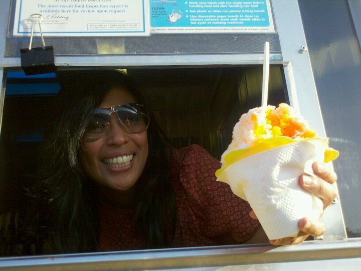 Martin went to Piaggio on wheels and ordered the Pulled Pork tacos, and from Morsels Bakery Truck picked up the Raspberry Cupcake for dessert, while I went to Tropical Shave Ice and got my P.O.G: The Passionfruit, Orange, Guava!