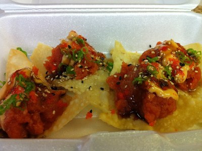Irvine: Rolling Sushi Van, Home Skillet Truck September 1, 2011September 18, 2015Leave a comment Tempura roll with spicy tuna from Rolling Sushi Van Spicy Tuna Chips from Rolling Sushi Van Ahi Sliders from Home Skillet Truck Share this: Click to share on X (Opens in new window) X Click to share on Facebook (Opens in new window) Facebook Click to share on Tumblr (Opens in new window) Tumblr Click to share on Pinterest (Opens in new window) Pinterest More Click to share on LinkedIn (Opens in new window) LinkedIn Click to email a link to a friend (Opens in new window) Email Click to print (Opens in new window) Print Click to share on Reddit (Opens in new window) Reddit Click to share on Pocket (Opens in new window) Pocket Like Loading...