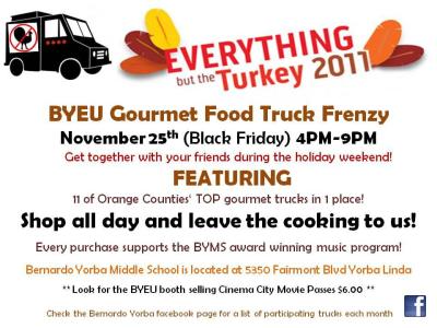 Yorba Linda: Black Friday Food Trucks November 18, 2011September 18, 2015Leave a comment Share this: Click to share on X (Opens in new window) X Click to share on Facebook (Opens in new window) Facebook Click to share on Tumblr (Opens in new window) Tumblr Click to share on Pinterest (Opens in new window) Pinterest More Click to share on LinkedIn (Opens in new window) LinkedIn Click to email a link to a friend (Opens in new window) Email Click to print (Opens in new window) Print Click to share on Reddit (Opens in new window) Reddit Click to share on Pocket (Opens in new window) Pocket Like Loading...
