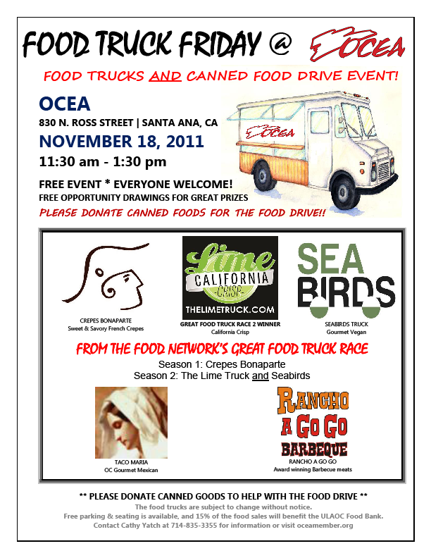 Nov 18: Santa Ana, Food Trucks at OCEA November 18, 2011September 18, 2015Leave a comment Share this: Click to share on X (Opens in new window) X Click to share on Facebook (Opens in new window) Facebook Click to share on Tumblr (Opens in new window) Tumblr Click to share on Pinterest (Opens in new window) Pinterest More Click to share on LinkedIn (Opens in new window) LinkedIn Click to email a link to a friend (Opens in new window) Email Click to print (Opens in new window) Print Click to share on Reddit (Opens in new window) Reddit Click to share on Pocket (Opens in new window) Pocket Like Loading...
