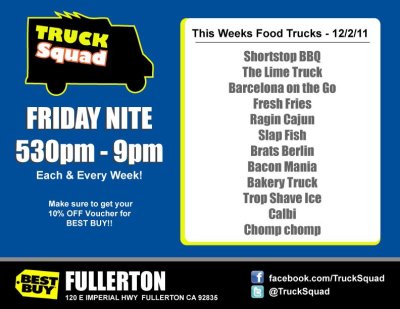 Friday night: Food trucks in Fullerton Best buy! November 30, 2011September 18, 2015Leave a comment Share this: Click to share on X (Opens in new window) X Click to share on Facebook (Opens in new window) Facebook Click to share on Tumblr (Opens in new window) Tumblr Click to share on Pinterest (Opens in new window) Pinterest More Click to share on LinkedIn (Opens in new window) LinkedIn Click to email a link to a friend (Opens in new window) Email Click to print (Opens in new window) Print Click to share on Reddit (Opens in new window) Reddit Click to share on Pocket (Opens in new window) Pocket Like Loading...