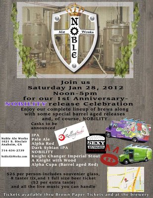 Jan 28: Noble Ale Works 1st Anniversary/NOBILITY Release Celebration
