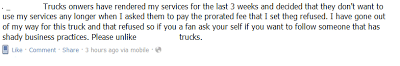 The food truck community is small. Word gets around, and the food truck owners (and foodies alike) will know which trucks are trustworthy and which ones are the snakes. There’s no need to be a little bitch and air your grieveances on the internet.
