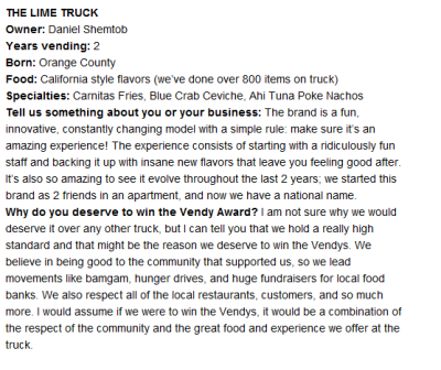 Finalists have just been announced for LA’s second annual Vendy Awards, a competition to celebrate this city’s best street food vendors.
