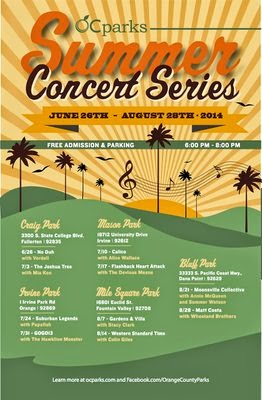 OC Parks welcomes back its annual outdoor summer concert series. Ten free concerts at Craig Regional Park, Mason Regional Park, Irvine Regional Park, Mile Square Regional Park and Bluff Park at Salt Creek Beach will present Southern California artists performing live under the summer sky on Thursday evenings June 26 through August 28.
