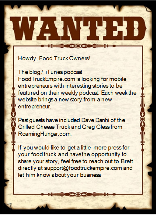 WANTED: Food Truck Owners !! July 3, 2014September 18, 2015Leave a comment Follow Food Truck Empire on twiter @FTEmpire www.foodtruckempire.com Learn how to start a food truck business the right way: Interviews with 6-figure mobile food entrepreneurs, free truck listings and more. Share this: Click to share on X (Opens in new window) X Click to share on Facebook (Opens in new window) Facebook Click to share on Tumblr (Opens in new window) Tumblr Click to share on Pinterest (Opens in new window) Pinterest More Click to share on LinkedIn (Opens in new window) LinkedIn Click to email a link to a friend (Opens in new window) Email Click to print (Opens in new window) Print Click to share on Reddit (Opens in new window) Reddit Click to share on Pocket (Opens in new window) Pocket Like Loading...