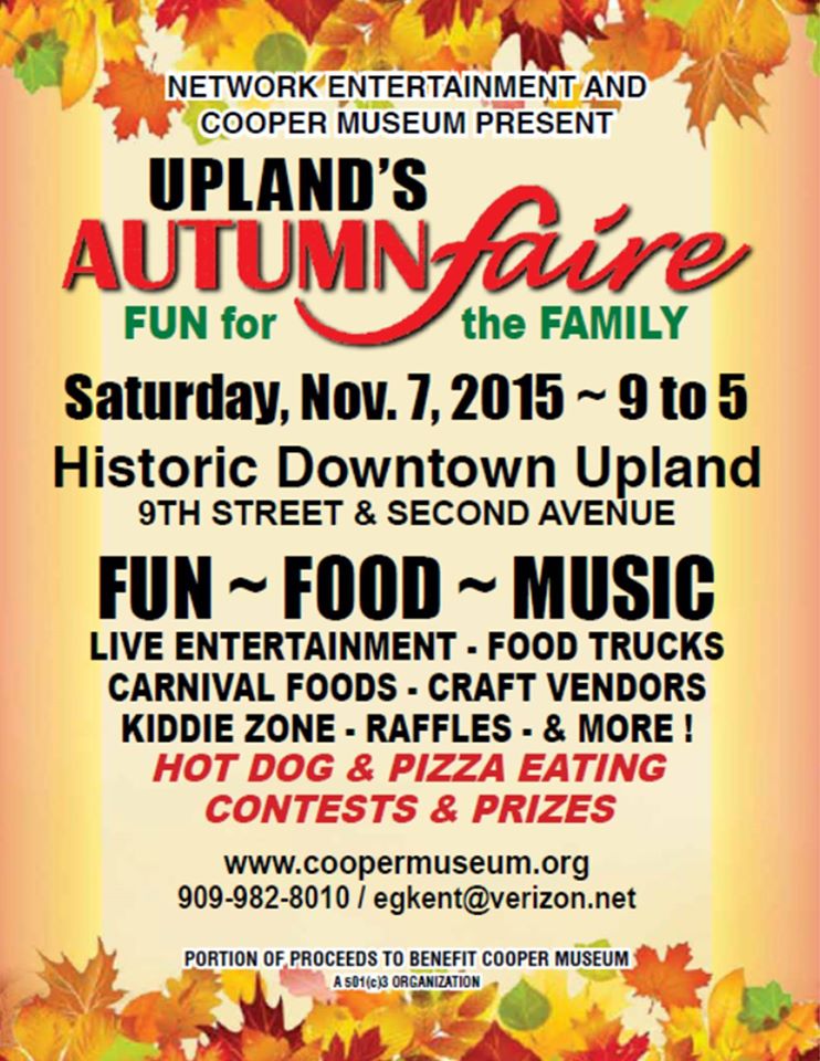 Network Entertainment & The Cooper Museum are proud to present Upland’s Autumn Faire, where there’s FUN for the whole Family.