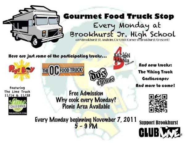 Follow @CurbsideBites for Food Trucks at various LA and Orange County High Schools: WhitneyHS, CharterOakHS, LoaraHS, TroyHS, CerritosHS, DowneyHS, SunnyHillsHS